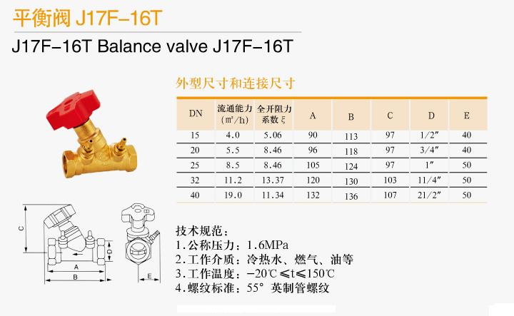• 簡介: 平衡閥J17F-16T技術規范: 1.公稱壓力:1.6MPa; 2.工作介質:冷熱水、燃氣、油等; 3.工作溫度:-20℃≤t≤150℃; 4.螺紋標準:55°英制管螺紋; 平衡閥是一種在…