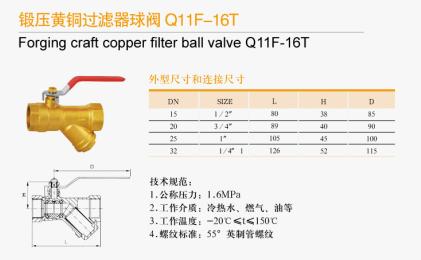 鍛壓黃銅過濾器球閥Q11F-16T技術規范: